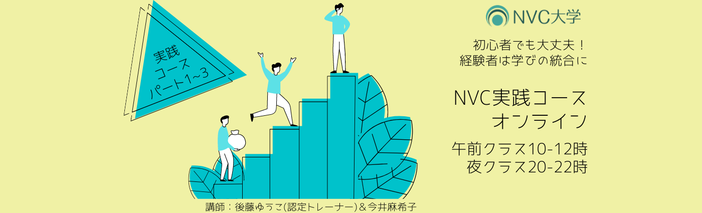そこでNVC大学では、NVCの実践について日本語で学びを深め実践にいかす「NVC実践コース」を開発しました。プログラムは以下の3つのパーツによって構成されています。